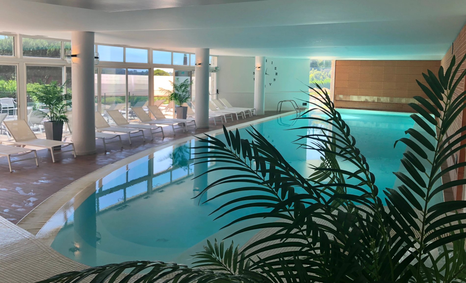 L’espace aquatique du Spa vous accueille dans une ambiance intime et relaxante, idéale pour se ressourcer. Il comprend un bain à remous, une piscine intérieure, une salle de repos avec tisanerie, un sauna ainsi qu’une terrasse extérieure équipée de transats et d’un solarium, invitant pleinement à la relaxation.